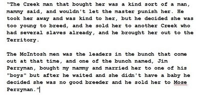 None this was a surprise, to hear, and it was perhaps a defensive mechanism. Recent years and lawsuits have brought out feelings of discomfort-----and even mentioning slavery in Indian country lets out a secret-- that five tribes, specifically THE Five Tribes held others in bondage, practicing the same institution---black chattel slavery.